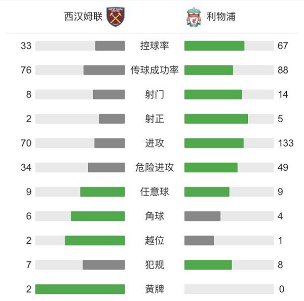 全场比赛结束,利物浦3-1西汉姆。