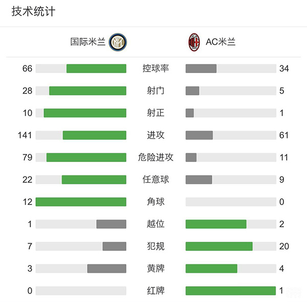 最终,国米2-1逆转十人米兰,成功晋级意大利杯四强。