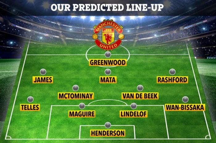 《太阳报》预测曼联首发:迪恩·亨德森/万比萨卡,林德勒夫,马奎尔,特莱斯/麦克托米内,范德贝克/丹尼尔·詹姆斯,马塔,拉什福德/梅森·格林伍德。