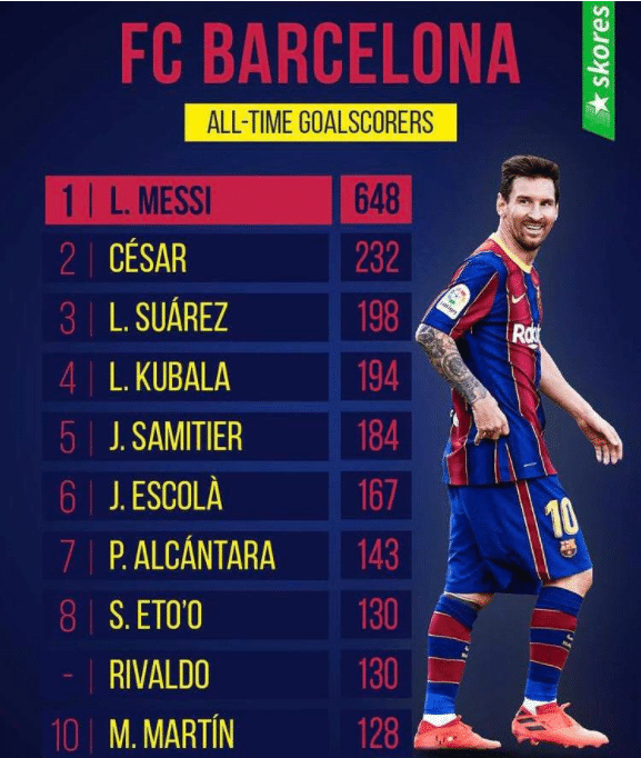而巴萨方面,队史最佳射手是梅西,他代表巴萨打进了648球,当然梅西的纪录还会继续。随后是塞萨尔的23球,跟着是苏亚雷斯的198球。随后是库巴拉的194球,萨米蒂尔的184球,埃斯克拉的167球,阿尔坎特拉的143球,埃托奥和里瓦尔多的130球,马丁的128球。从数据可以看出,巴萨方面的历史真的不如皇马。