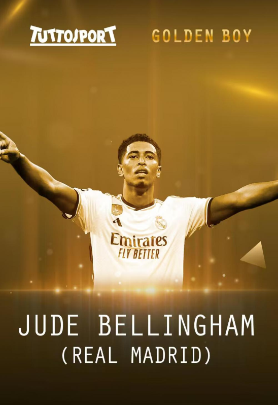 官方:贝林厄姆荣膺2023年金童奖 包揽科帕+金童