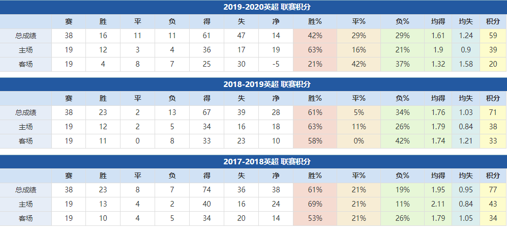 热刺近年成绩: