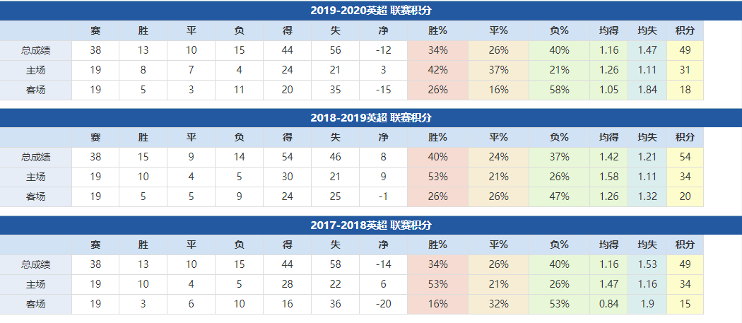 埃弗顿近年成绩:
