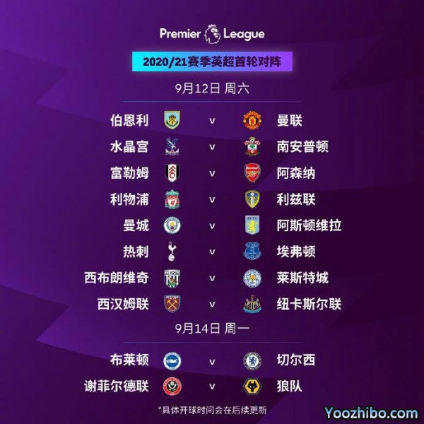 2020-21赛季英超新赛季赛程公布 首轮9月12日开战