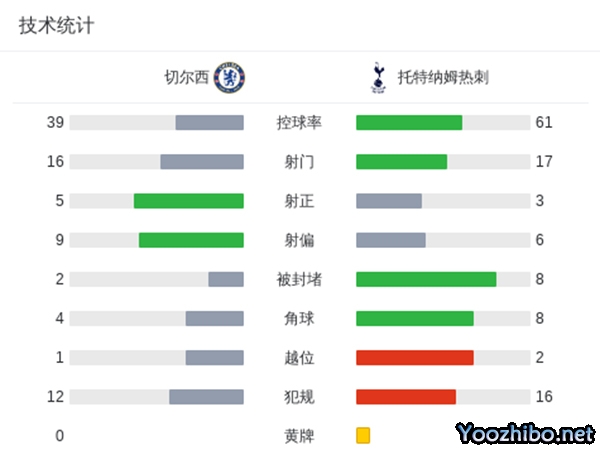 切尔西2-0热刺 查洛巴破门 雅克松补射建功