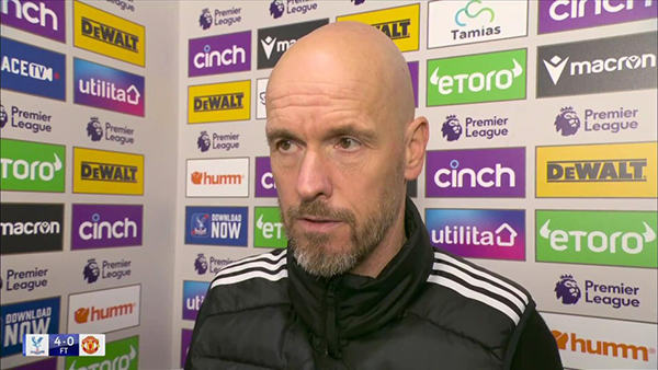 滕哈格为0-4惨败水晶宫甩锅:曼联伤了整条后防,我仍是最佳主帅