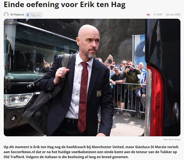 来源:24直播网05-23 16:5324直播网讯 北京时间5月22日晚,知名转会专家迪马济奥接受荷兰媒体soccernews.nl的采访时表示,曼联已决定在赛季结束后与主帅滕哈格分道扬镳,新的主帅候选包括波切蒂诺、麦肯纳、德泽尔比等人。迪马济奥言之凿凿的表示:“可以肯定的是:曼联今夏将告别滕哈格。”