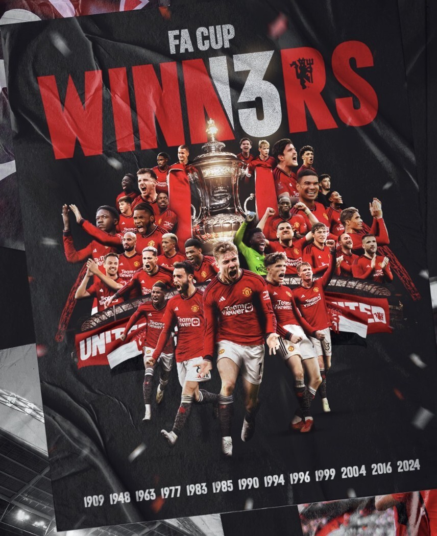 来源:24直播网05-26 13:2024直播网讯 在北京时间5月26日凌晨结束足总杯决赛中,曼联2-1力挫卫冕冠军曼城,时隔8年再次问鼎足总杯冠军。而凭借这个冠军,曼联也让阿森纳无缘下赛季社区盾杯、切尔西无缘下赛季欧联杯、纽卡斯尔联无缘下赛季欧战。