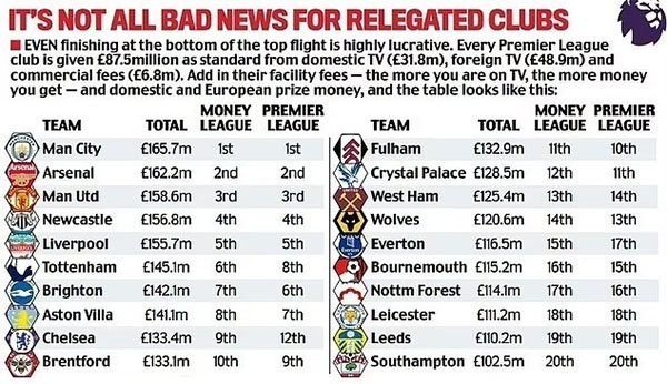 值得注意的是,按照上赛季的英超转播分红,英超的20支球队均能分得超1亿镑。这对于下赛季征战英超的南安普顿来说,无疑是一笔可观的收入。