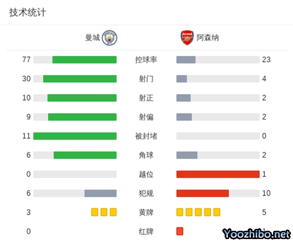 曼城2-2绝平十人阿森纳 斯通斯读秒绝平特罗萨德染红