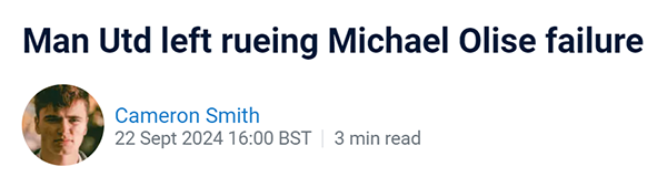 曼联前锋只在对英超升班马南安普顿和英甲中游球队巴恩斯利的比赛中才能发威,据称老板吉姆·拉特克里夫爵士对今夏没有签下水晶宫的迈克尔·奥利斯已经感到后悔,后者被誉为「左脚亨利」。