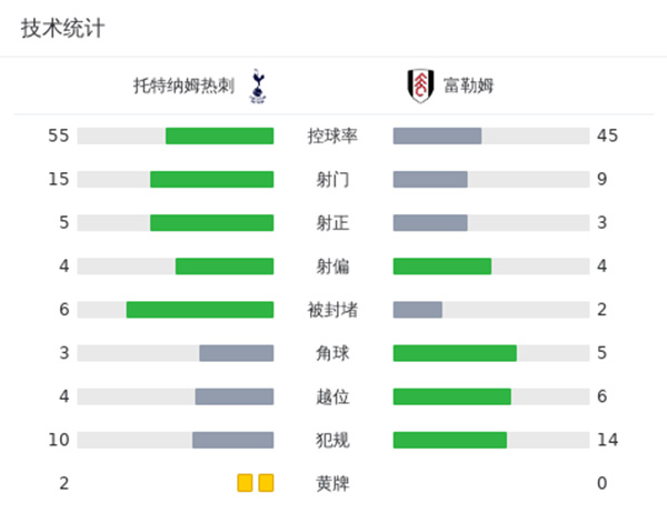 热刺2-0富勒姆 孙兴慜传射麦迪逊破门