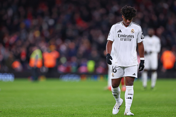 来源:24直播网11-28 17:3024直播网讯在北京时间11月28日凌晨结束的欧冠联赛阶段第5轮一场焦点战中,卫冕冠军皇马在客场0-2被利物浦复仇成功,遭遇2连败后跌至积分榜第24位。而本场比赛18岁的巴西天才恩德里克尽管替补登场,却没能成为奇兵,反而因为故意犯规伤人引发争议。