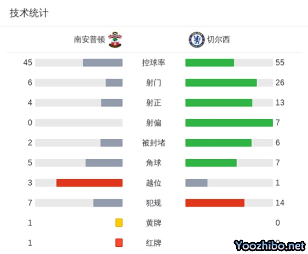 切尔西5-1十人南安普顿3连胜 库库造红牌恩昆库马杜埃凯传射
