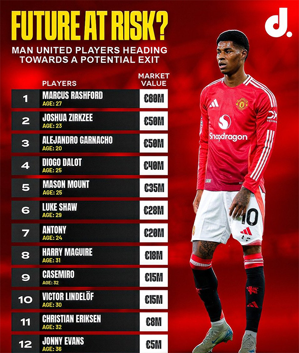 俱乐部过去三年亏损高达3亿英镑,有违反PSR规则的风险,尤其是在夏季花费2亿英镑买人后,拉爵又不得不花费2140万英镑来解雇滕哈格和聘请阿莫林。曼联面临着出售球员的压力,以遵守英超PSR利润和可持续发展规则,并为新任主教练阿莫林筹集资金买人,贯彻其343战术理念,现有球员大部分都无法胜任其哲学。