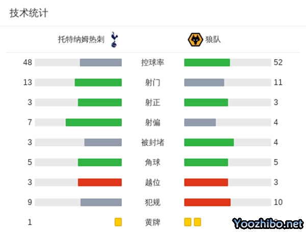 第7分钟,狼队通过战术任意球取得领球,艾特-努里横传禁区前沿,黄喜灿迎球右脚兜射圆月弯刀破门,狼队1-0领先热刺。