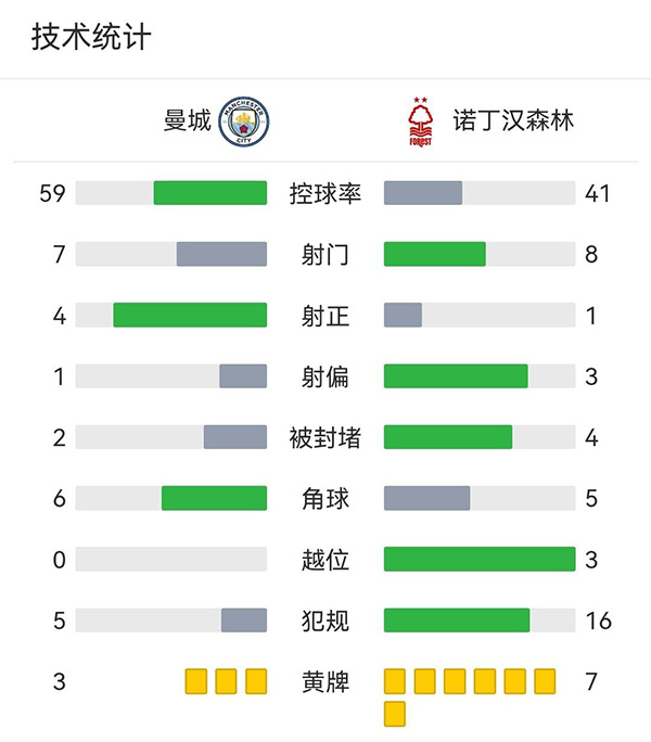 曼城2-0森林 罗德里锁喉染红将缺战枪手福登哈兰德建功