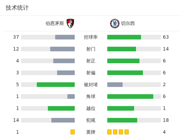 切尔西0-0伯恩茅斯 杰克逊中柱斯特林造险