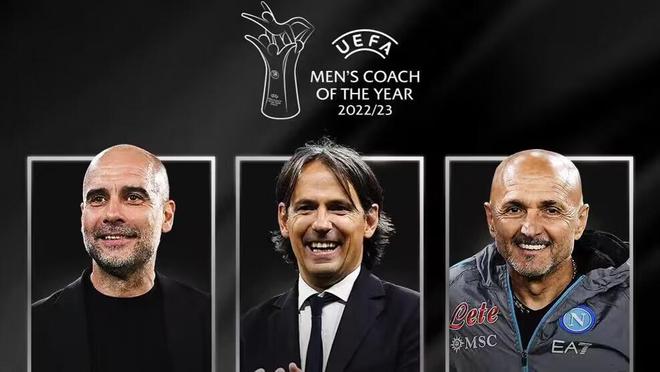 24直播网08月18日讯,欧足联官方公布2022/23赛季最佳男足教练三人候选,分别是瓜迪奥拉(曼城)、西蒙尼-因扎吉(国际米兰)、斯帕莱蒂(那不勒斯)。