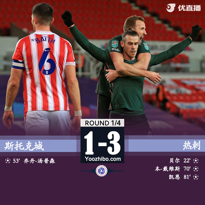英联杯简报:热刺3-1击败斯托克城 凯恩贝尔本-戴维斯破门