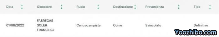 24直播网08月01日讯 消息,意乙联赛官网显示,35岁的西班牙中场法布雷加斯已经加盟意乙科莫。