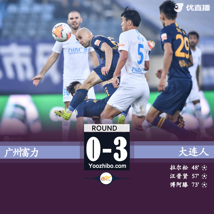 24直播网讯:北京时间11月6日15点30分,2020赛季中超联赛进入第19轮争夺。在大连体育中心体育场,广州富力队与大连人队展开第11-12名排位赛首回合争夺。经过90分钟激烈对垒,大连人队依靠拉尔森的一射两传3-0击败广州富力队,上半场拉尔森还有一脚任意球射门击中横梁弹出,不过由于累积四张黄牌,拉尔森次回合将要停赛,汪晋贤一传一射,博阿滕则轰进一记世界波。