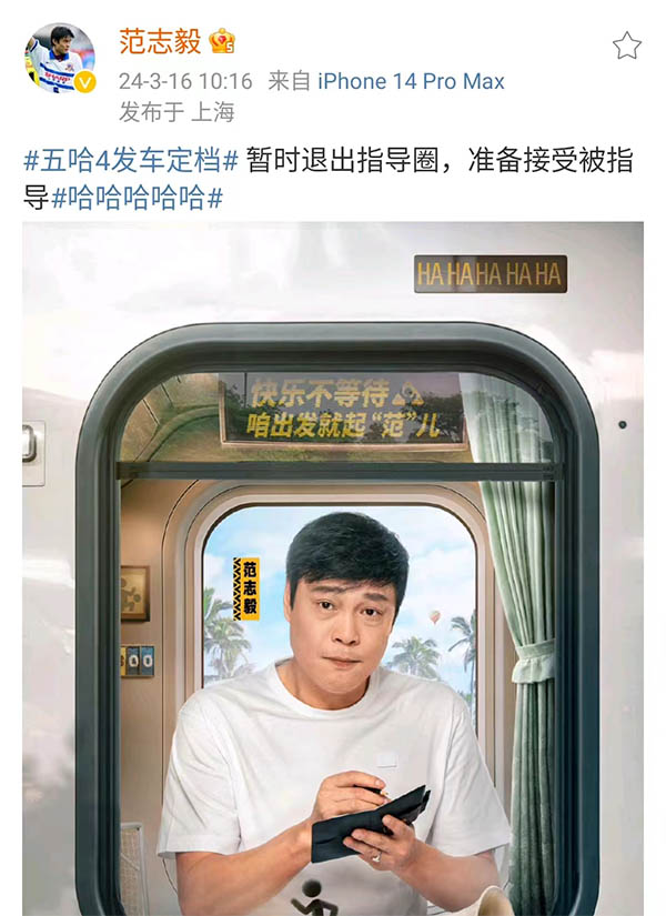 不过,范志毅这边似乎并无所谓,为什么呢?在3月16日,范志毅也是官宣了决定,那就是暂时退出指导圈,准备接受被指导。这是啥意思呢?简单的理解是,范志毅的综艺节目五哈又定档了,范志毅又要来到剧组开始新的综艺节目拍摄,而在这一段时间里面,范志毅将再一次暂时离开足球,他的身份不再是崇明基地的范志毅指导,而是真人秀演员范志毅。