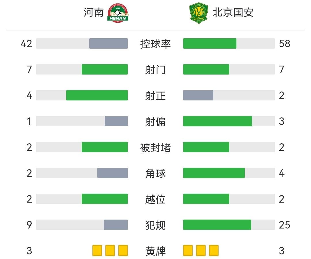 全场比赛结束,河南0-1北京国安。