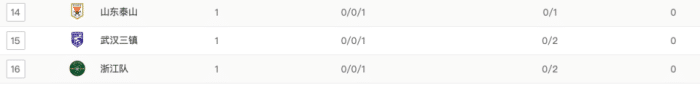 而上赛季季军浙江队本轮也输球了。坐镇主场的他们,0-2完败给亚泰。首轮过后,山东泰山、武汉三镇和浙江队,一球未进集体输球,分别排名积分榜倒数第3、第2和垫底位置。上赛季中超冠亚季军集体遭遇开门黑,再度证明了本赛季中超整体竞争力空前激烈,当年广州(恒大)队实力断层领先的局面,已经一去不复返了。