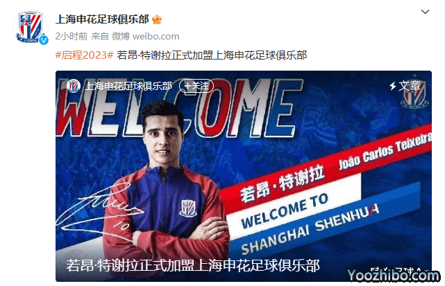 官方:若昂·特谢拉正式加盟上海申花足球俱乐部