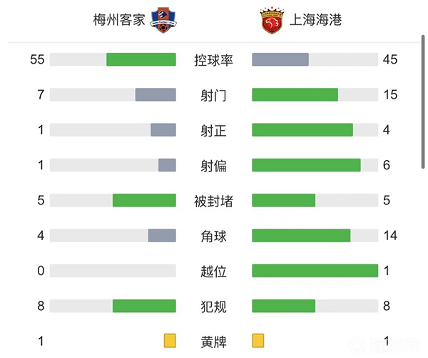 全场比赛结束,最终梅州客家0-1上海海港。
