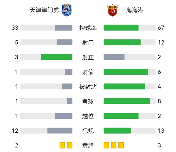 全场比赛结束,最终天津津门虎1-0上海海港,送给对手联赛三连败。