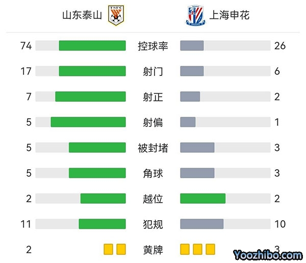 全场结束,泰山2-0击败申花。