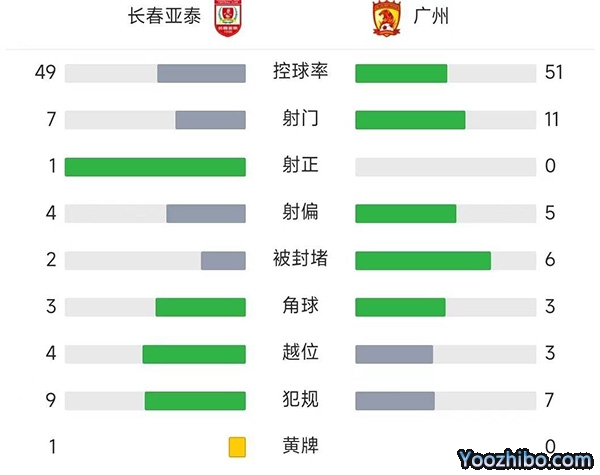 广州0-0亚泰 双方全场共1脚射正黄博文替补登场