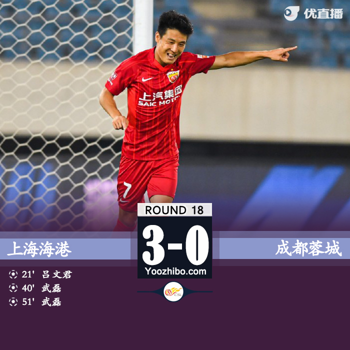 全场结束,上海海港3-0击败成都蓉城迎来联赛三连胜。