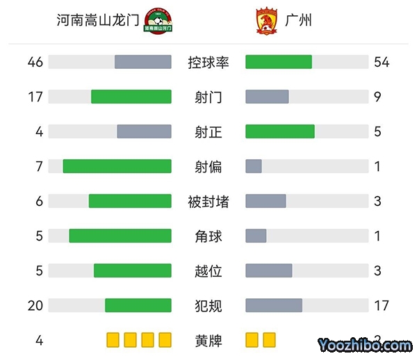 全场比赛结束,河南嵩山龙门2-1广州。
