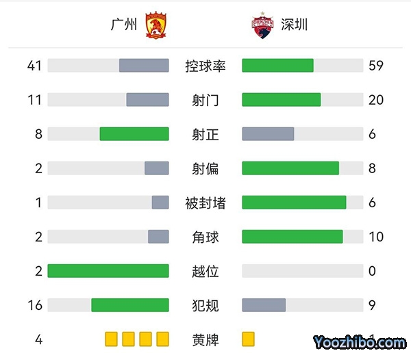 全场比赛结束,全场比赛结束,广州4-1深圳。