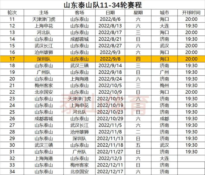 泰山队赛程解读,前7轮6个客场,9月连打三镇海港,末轮对国安