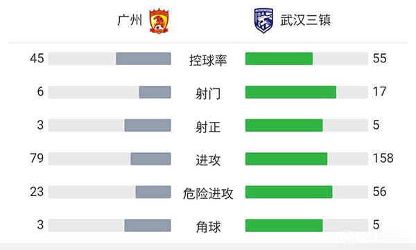 全场比赛结束,最终广州1-2被武汉三镇逆转,三镇以2分优势领跑积分榜。