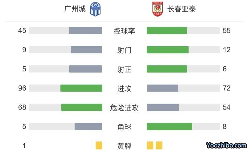全场比赛结束,亚泰3-1击败广州城。