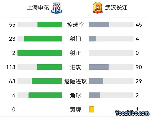 全场比赛结束,上海申花2-0战胜武汉长江。
