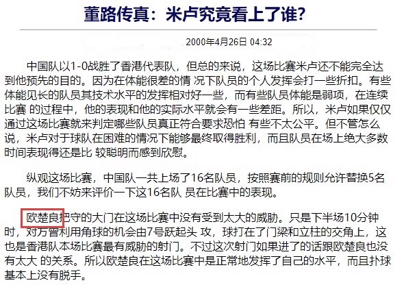 随后董路迅速在凌晨发文回应,他表示自己2003年才开始学着用电脑,之前给报社写正经的稿,都是手写发传真。在米卢时代,几乎所有从前线发回的“稿件”都是通过电话语音。发这篇稿件的时候,他当时是发的语音给编辑,一位小姑娘编辑录音后整理成稿件发表,他当时不会打字,可能编辑听到他说“ou楚良”,打成“欧楚良”是可能的,然后校对没有校出来。