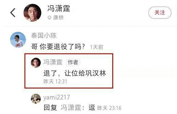 但作为运动员,同时也是公众人物,的确需要承受一些常人没有的压力,比如牺牲部分隐私,甚至于挨骂。因为他们在这个位置上,获得了很大的利益,和娱乐明星一样,有人喜欢你,总会有人憎恨你。冯潇霆这样的回应,显然是有些玻璃心了。不能说球迷批评你,就对球迷说:你行你上啊!