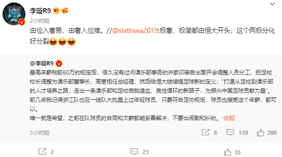 来源:24直播网02-20 16:0224直播网讯 北京时间今天,足球报李璇发表了对广州队薪资调整的看法,随后补充道:“由俭入奢易,由奢入俭难”。
