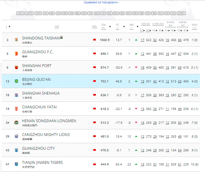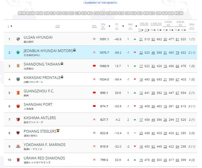 东亚俱乐部最新排名:山东泰山第三,广州队第五
