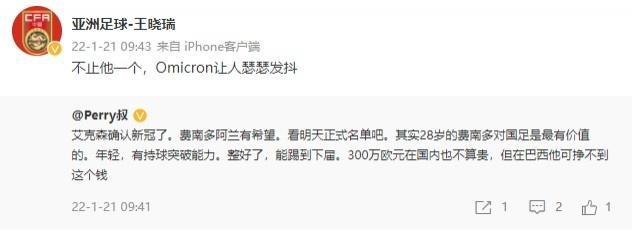 24直播网01月21日讯 据记者王晓瑞报道,感染新冠的国足球员不止艾克森一人。