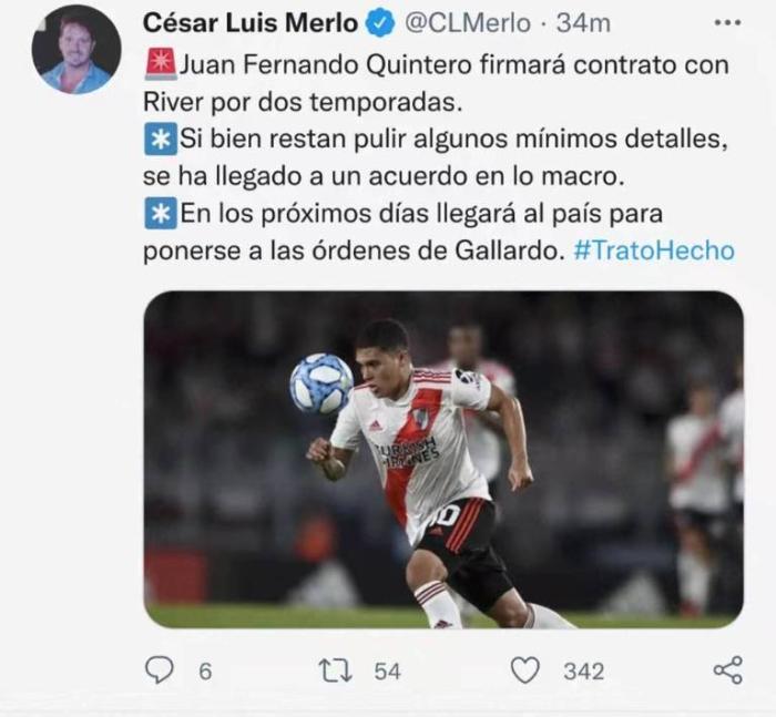 24直播网01月19日讯 北京时间,据记者CésarLuisMerlo报道,深圳外援金特罗将和河床签约两年时间。