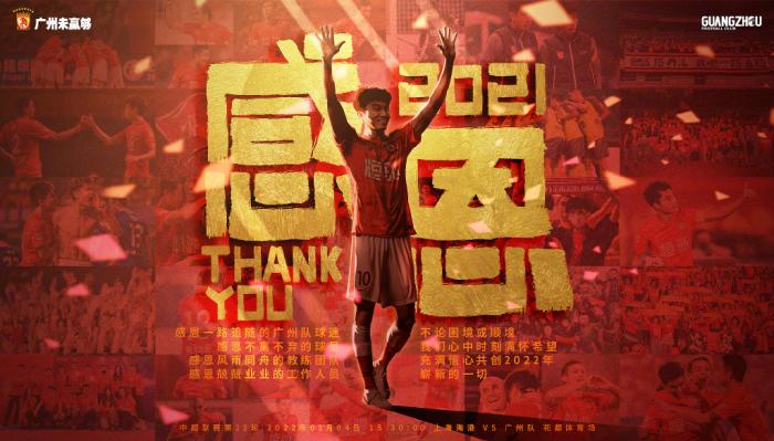 所以,广州队在比赛之前发布了海报,以郑智为人物向社会各界表达了感恩,并且希望踢好本场比赛迎接下赛季的挑战。郑智也在近日多次接受采访,表达了球迷、相关组织和单位对于广州队的支持,他也希望广州队会拼尽全力踢好本场比赛,同时对备战2022新赛季的国际国内比赛也充满信心。