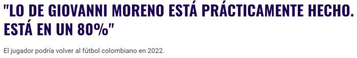 该媒体表示,莫雷诺重返国民竞技的交易已经完成80%,此前莫雷诺就曾表示非常希望回到国民竞技结束自己的职业生涯。