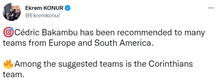 该记者表示,巴坎布被推荐给欧洲和南美的多支球队,这其中包括巴甲豪门科林蒂安。